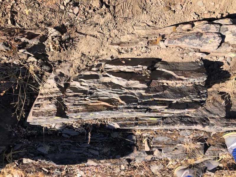 Atop the Grizzly Peak formation, we saw what looked like a more continuous lava flow rather than the spatter we had been seeing along the way. We also began to notice platy lava, or lava rock that cooled to form joints that look like flat stacks of dinner plates. Although these joints were parallel to each other, they were inclined about 15-20° to the northeast. This is due to the constant, slow uplift of the Klamath Mountains, a reminder that the landscapes we think we know are constantly under revision by the forces of tectonism.