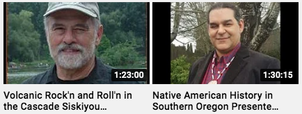 You can view our recorded lectures and presentations on our newly launched YouTube Channel. The first two titles and speakers are: Volcanic Rock’n and Roll’n in the Cascade-Siskiyou National Monument, by Jad D’Allura, SOU Professor Emeritus; and Native American History in Southern Oregon by David Lewis, Oregon State University Professor. Any recorded video will be added to the channel.