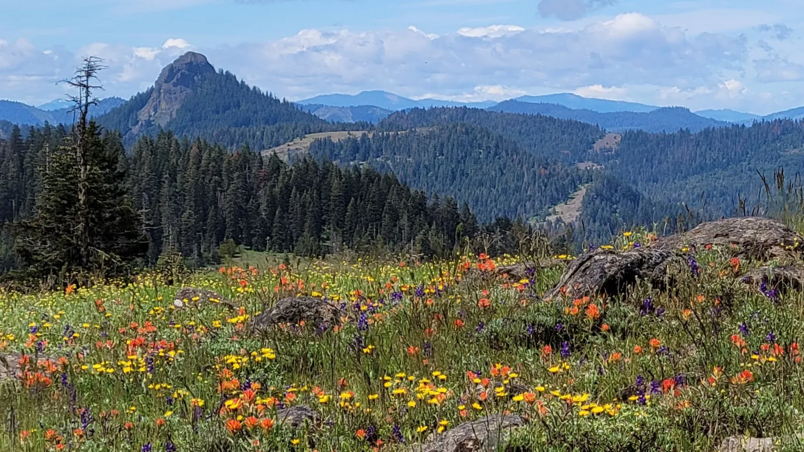 On June 10 – 11, there was a painting adventure in the Cascade-Siskiyou National Monument. Twelve experienced artists from around the state learned about the treasure trove of spectacular views and complex ecosystems that bring a wide variety of plants and trees together in this unique environment. Except for the wind, the weather was perfect and the wildflowers were in rare splendor.