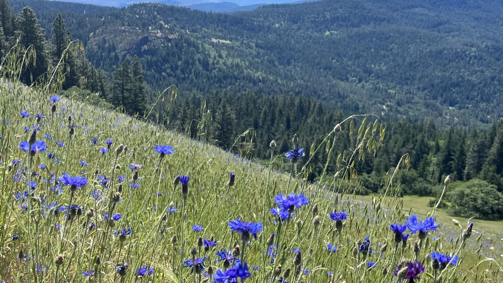 A huge thunderstorm the night before and a chilly morning drizzle on a holiday weekend led to a smaller group this Sunday, July 3, 2022. The loop is situated on the PCT, but it’s pretty different from last week’s PCT trek because of the variety in ecosystems you can see. The five of us hiked the cool, foggy trail, the clouds parting occasionally with sunbeams breaking through. The views might not have been quite as sweeping as usual, but we still saw the depth of the valley and a slew of wildflowers still hanging on late into the season.