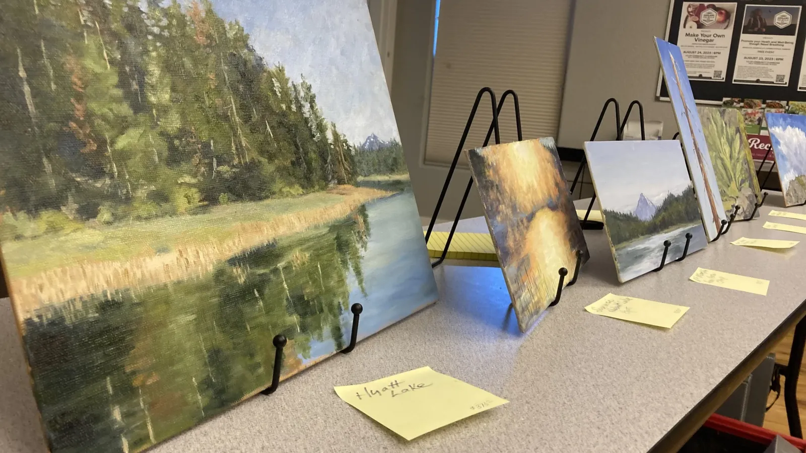 Leslie Ann Hauer, who is from the east side of Washington State, set up her gorgeous oil paintings along a table. While she has no formal art training, you wouldn’t be able to tell. Her paintings all captured a snapshot of the Monument in colorful detail. From a gorgeous landscape at Hyatt Lake –with “50 shades of green”– to a detailed study of a mossy fence post, you truly felt as though her subjects came alive.