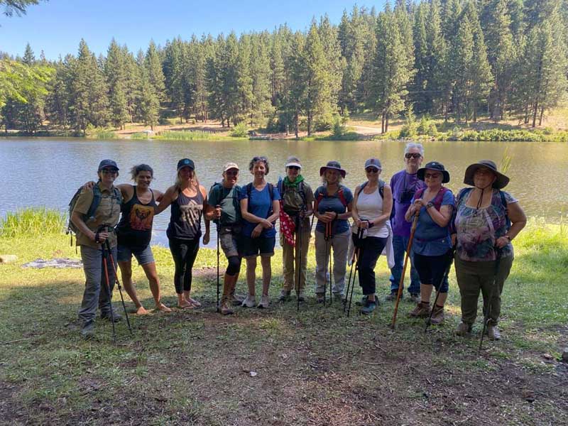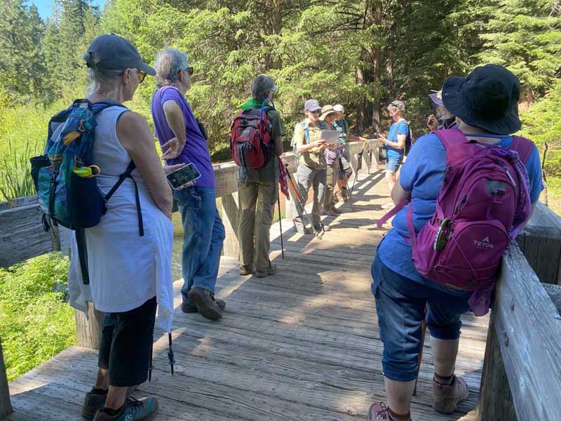 Little Hyatt Reservoir, the destination of our hike, holds a place in the region’s history of water rights and natural resource usage. As we gathered together, I transported the group back in time, sharing the history of the early 1900s and mid-1920s when irrigation districts in the area completed several water diversion and delivery systems. The complexity of water resources is evident in the presence of transbasin usage throughout this region. In 1923, the construction of Hyatt Reservoir in the Klamath Basin was completed, with the purpose of transferring water to users in the Rogue River Basin. Subsequently, Little Hyatt Reservoir became another addition to the system at a later time.