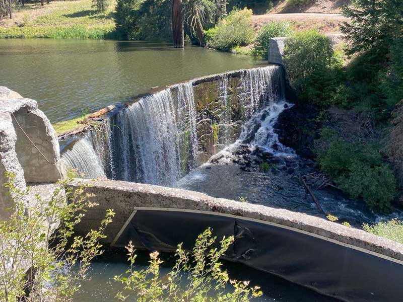 In 2003, the Bureau of Land Management (BLM) applied for water rights to Little Hyatt Reservoir, and by 2010, they had secured a recreational, aesthetic, and wildlife water right. As we discussed the acquisition of water rights, we examined the dam, observing large cracks spanning its length. Concerns had surfaced during a 1999 structural review about the dam’s stability, as it relied on the support of a deteriorating concrete canal. The KPFF Consulting Engineers recommended repairs to prevent potential dam failure.