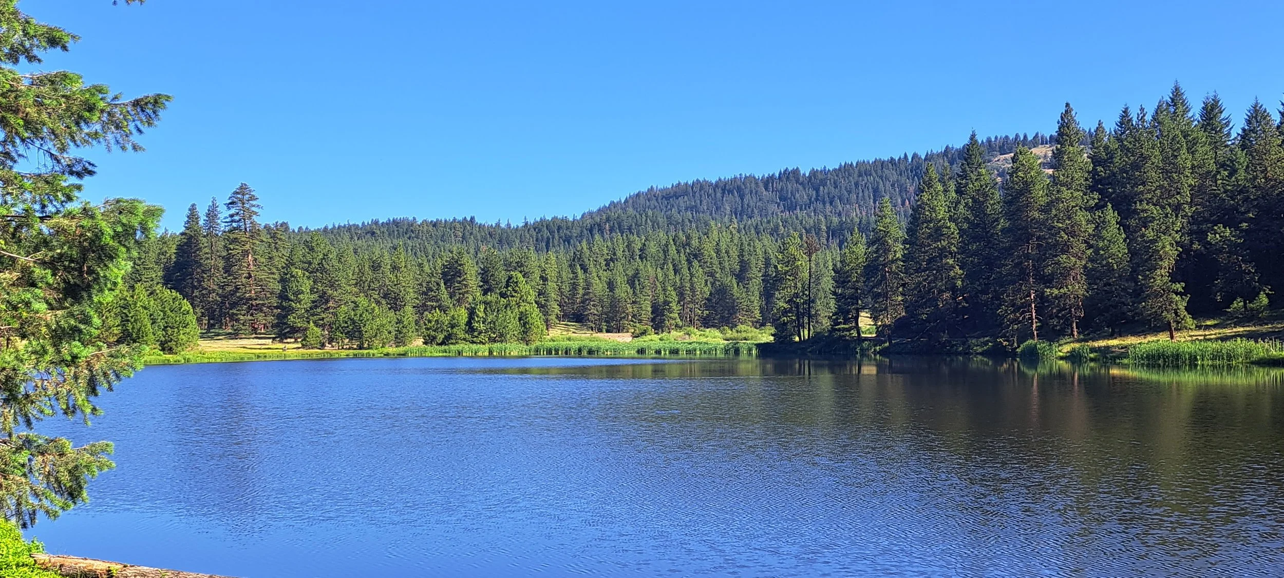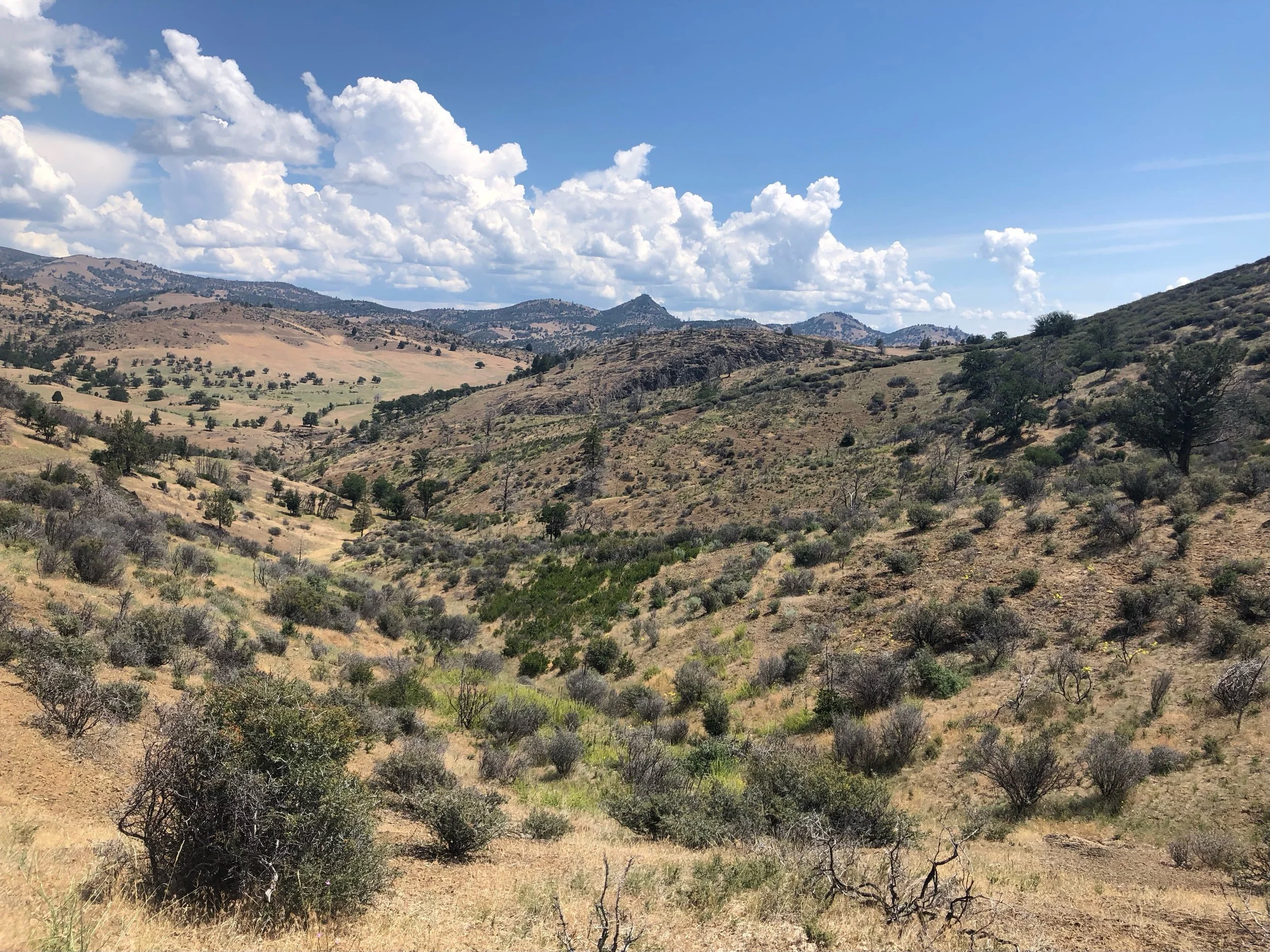 I live on Washington’s dry side where the predominate color is desiccated brown. There really aren’t many shades of brown: light brown, medium brown, dark brown, brown in sunlight, brown in shadow. And for most of the year, the occasional touches of green are faded, like the pale green of sagebrush. In contrast, green was not at all reticent at Cascade Siskiyou National Monument in June.