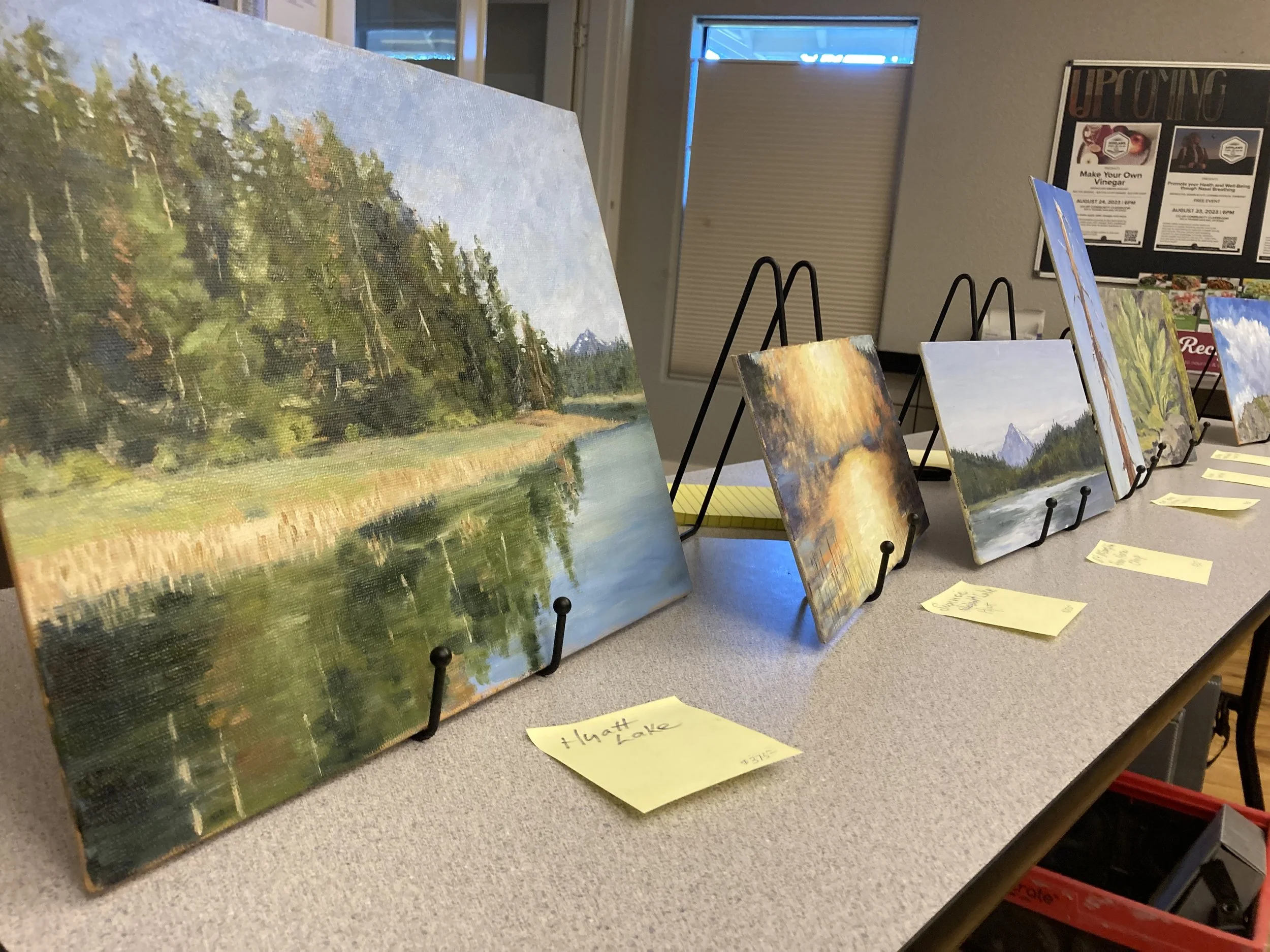 So I spent my time in the Monument painting green in all its glory. I painted the variety of greens in the forest and in the reflections in Hyatt Lake, and I painted the delicate soft pale green of mullein and the chartreuse green of moss on a fence. There were more greens, lots more, reflecting the variety of plants and ecosystems in the Monument. I suppose the overwhelming green was, in part, a seasonal condition and that summer, fall, and winter would bring a different set of colors. And that will be a challenge for another Artist in Residence!