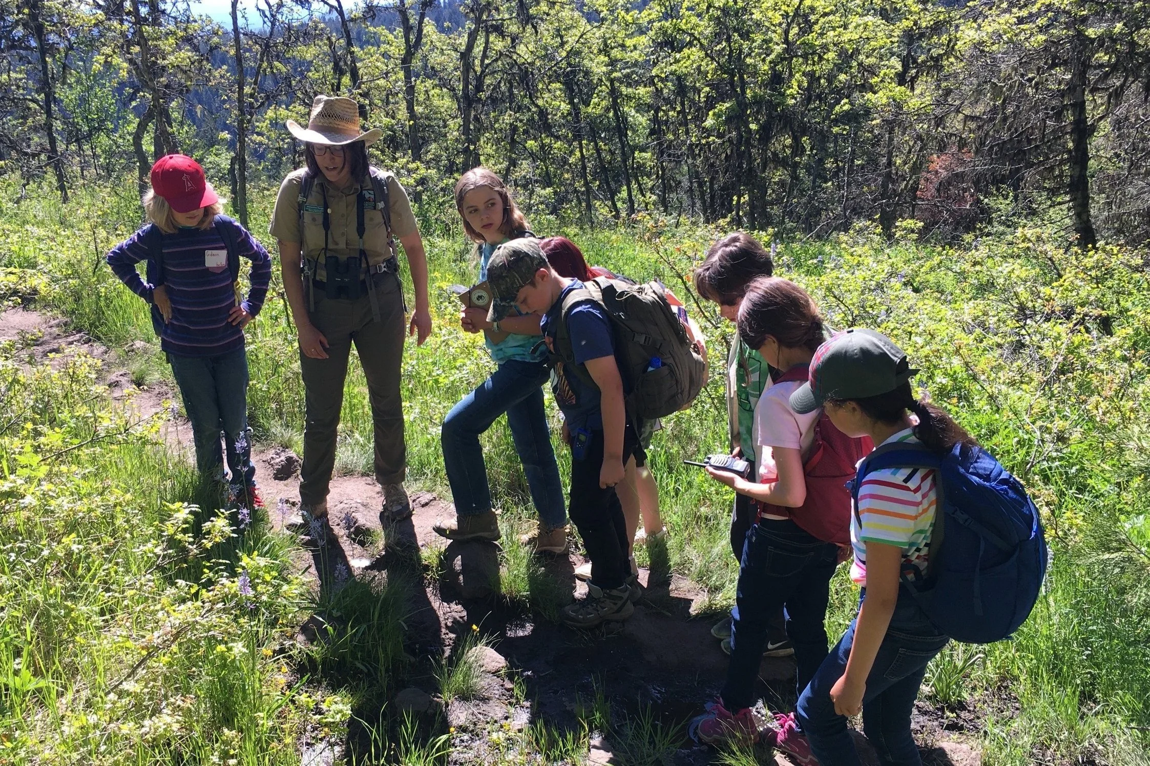 Our first Monument Day Camp kicked off at the Hobart Bluff trailhead on June 15, 2022. Due to spectacular conditions, programming was focused on wildflower education! With hand lenses and field guides in-hand, 30 students and their instructors scoured the Hobart Bluff and the Pacific Crest Trail for as many wildflower species as they could find. Many meadows and clearings were packed with paintbrush, lupine, wallflower, and desert parsley species. Additional wildflower highlights included Great camas (Camassia leichtlinii), checker lily (Fritillaria affinis), goat’s beard (Tragopogon dubius), and the Roundtooth ookow (Dichelostemma multiflorum).