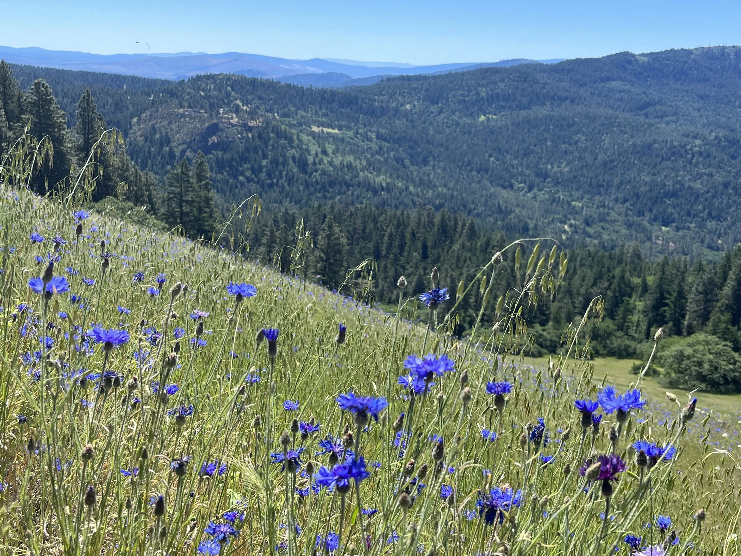 Some species on the forest floor included yellow Baker violets (Viola bakeri), Calypso orchids (Calypso bulbosa), rosy plectritis (Plectritis congesta), and striped coral-root (Corallorhiza striata). Shrubs in bloom included gooseberry (Ribes cruentum), red flowering currant (Ribes sanguineum), and serviceberry (Amelanchier alnifolia). Wet meadows were full of Camas (Camassia quamash). At and around the summit we saw lupine (Lupinus spp.), desert parsley (Lomatium spp.), Siskiyou onion (Allium siskiyouense), and so many more. The song of the Lazuli bunting (Passerina amoena) was the soundtrack to our expedition.
