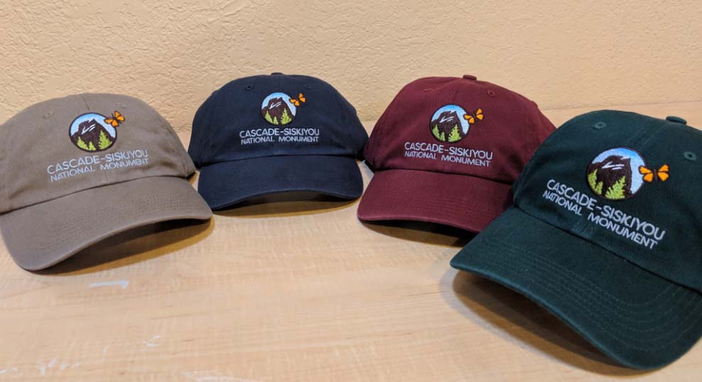 Adjustable, soft-sided, low-profile ball cap available in four colors features the Friends of Cascade-Siskiyou National Monument logo on front and “Biodiversity” text on back.