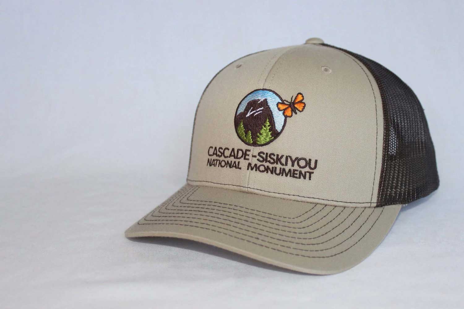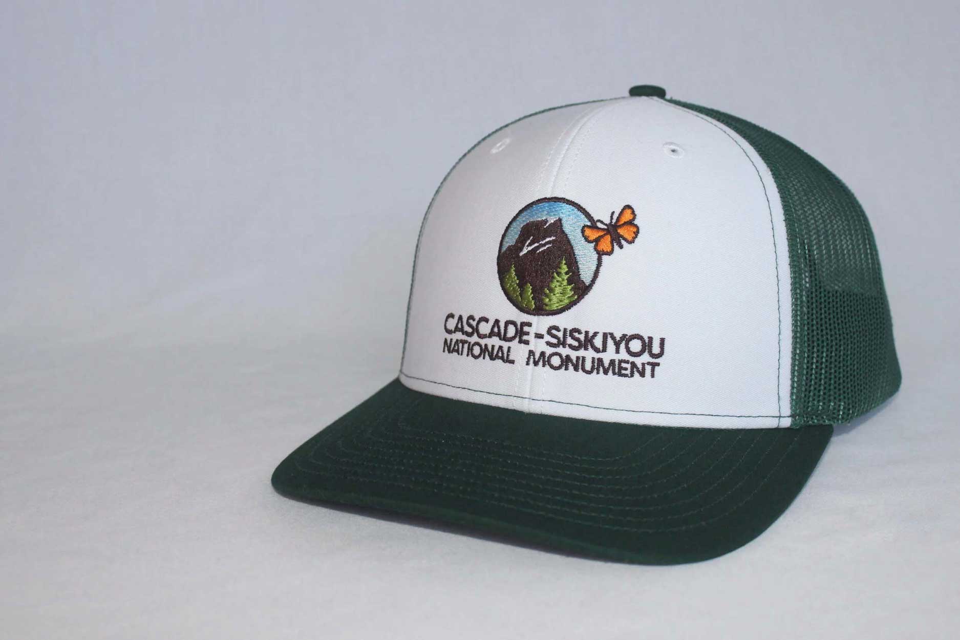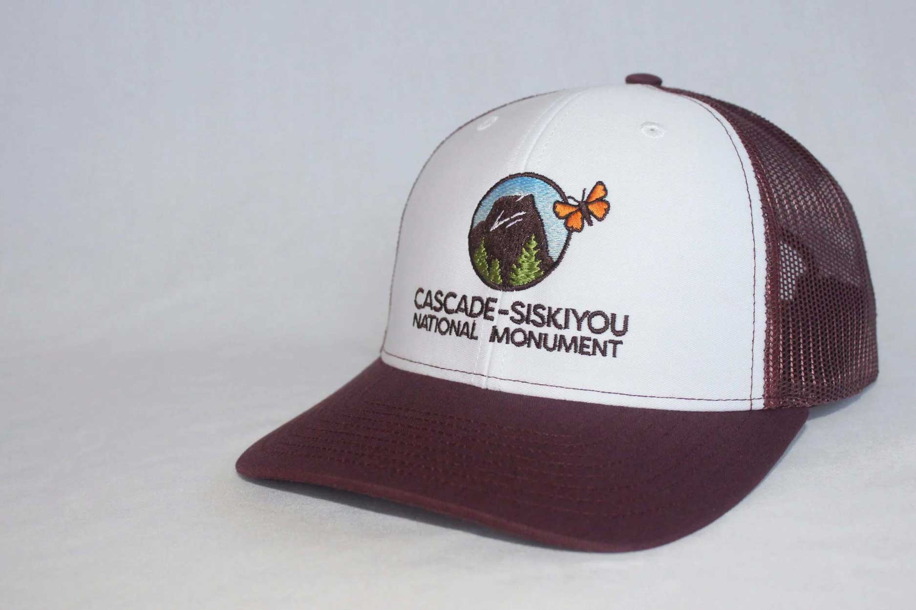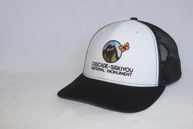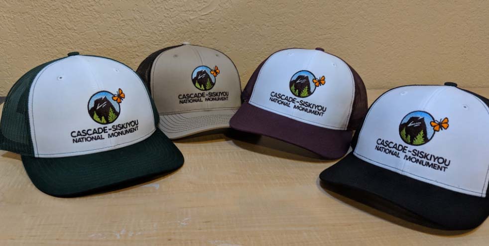 Adjustable trucker-style mesh hat available in four colors features the Friends of Cascade-Siskiyou National Monument logo on front and “Biodiversity” text on back.